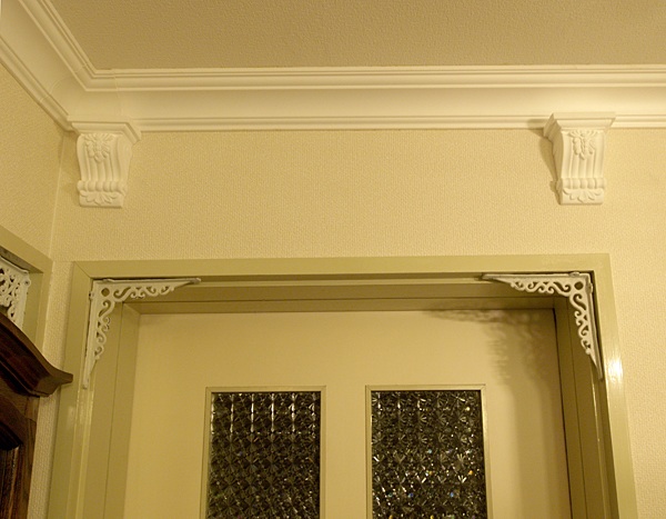本物のメダリオンと天井周り縁が見事です。壁は漆喰です。