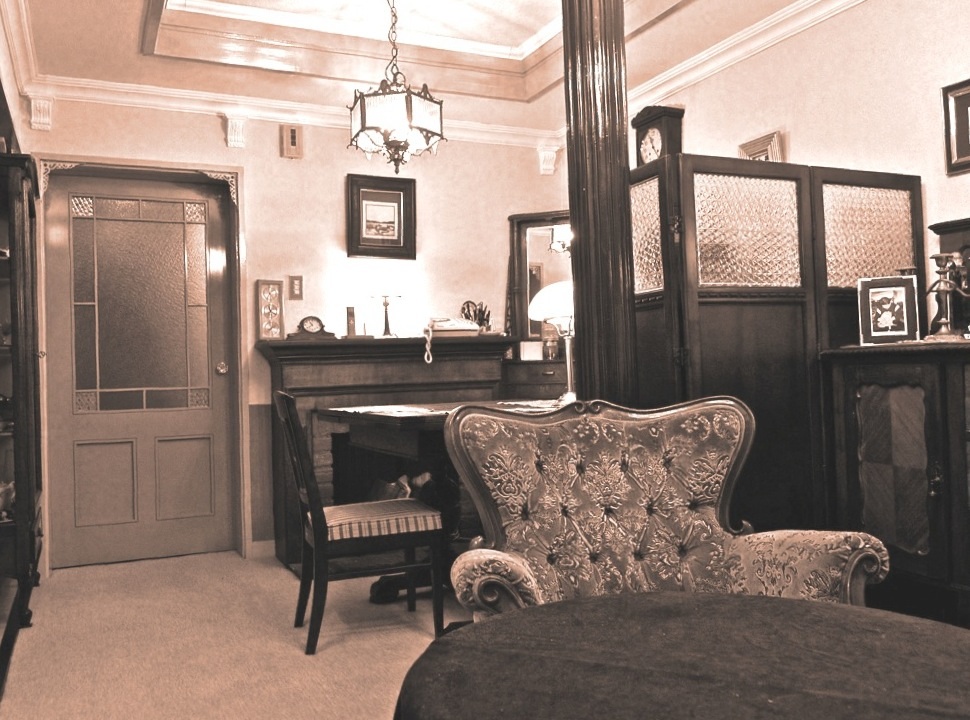 昭和のはじめのコーナー家具と書棚を配置