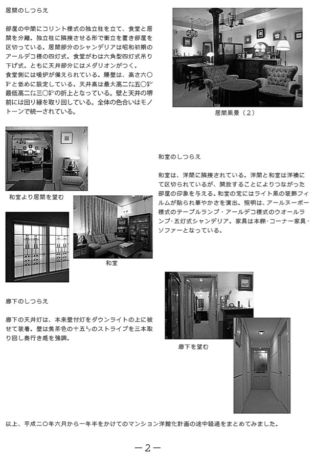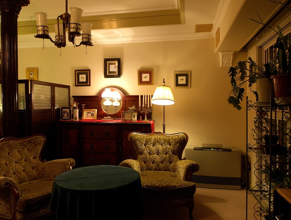 和室にはシャンデリアとアールデコのウオールランプ。